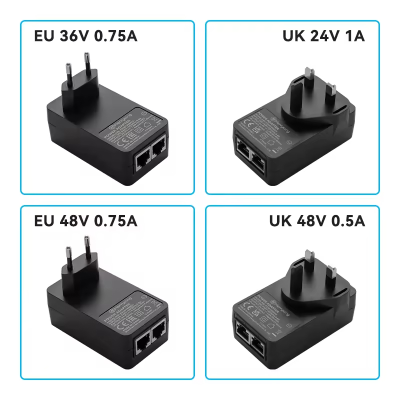 2.IEEE802.3af Power over Ethernet with 48V Power Supply, wall plug type.
